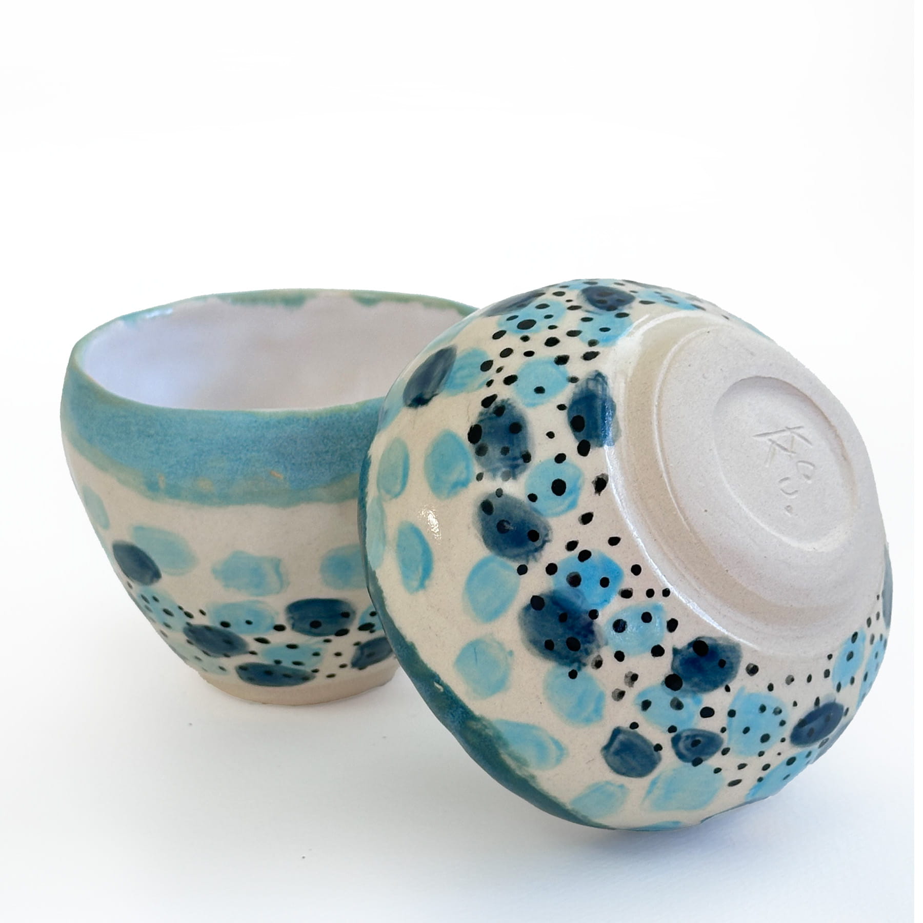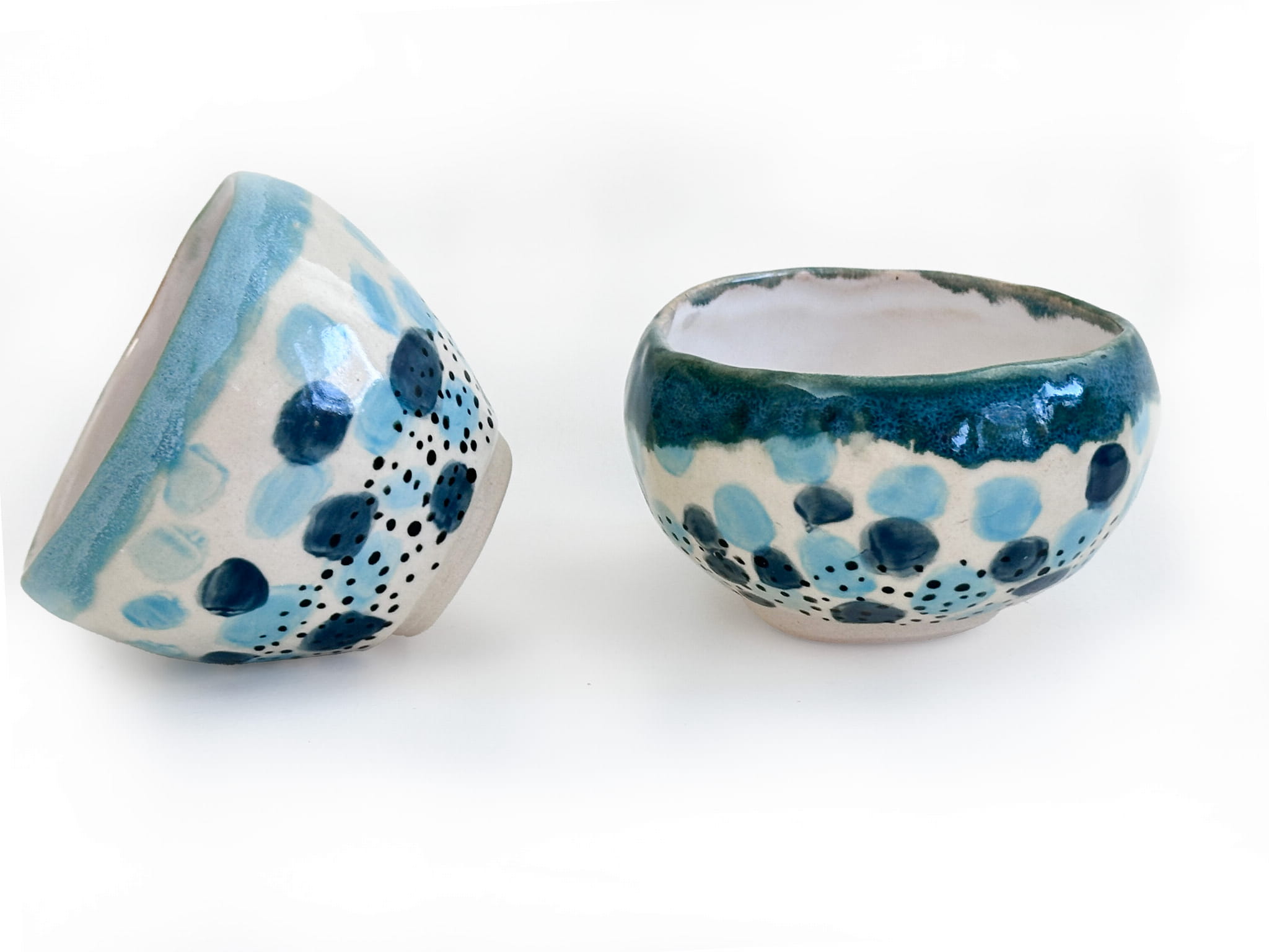 Ręcznie ulepiona czarka o organicznej, nieregularnej formie. Powstała w technice pinch pot – formowana bez użycia koła, bezpośrednio w dłoniach.
